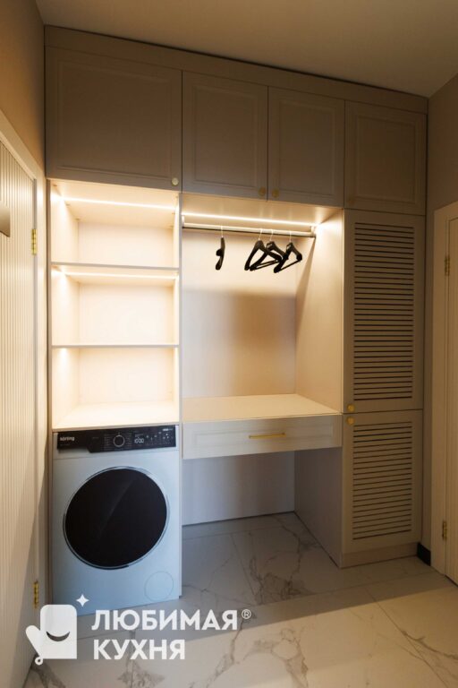 Двери: нижние фасады ТРП Софт Мокко, фрезеровка Париж мини, верхние фасады ТРП Софт Мокко и Графит матовый, индивидуальная фрезеровка
