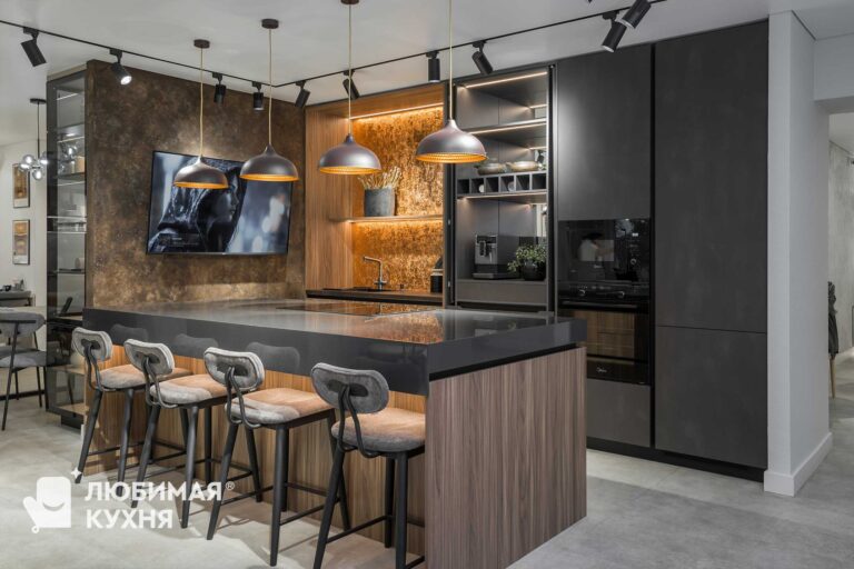 Стиль: Дизайнерские, Кухни без ручек, Кухни для частного дома, Кухни с пеналом, Кухня фьюжн, Лофт, Модерн
